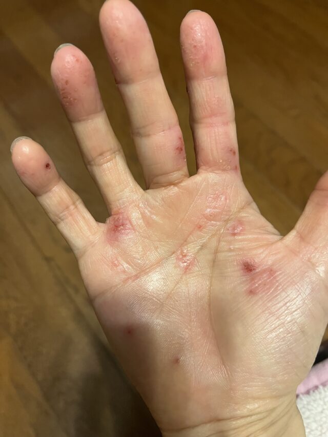 - 手の平にブツブツができて痛いしかゆい