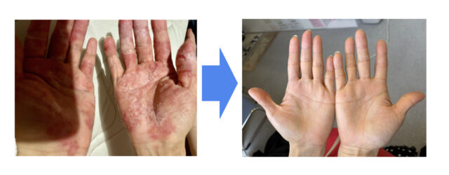 重度の掌蹠膿疱症の改善事例